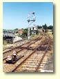 of the car park near the turntable. The sign saying PEDESTRIANS ONLY,