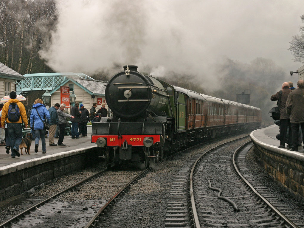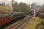 weather was dull for the most part and Sunday began very wet indeed. But things were about to brighten up as I wandered onto Grosmont’s platform 4 intending to observe the departure of the12.30 service for Pickering. Blissfully unaware at this point that my son Ben was about to sprung the biggest surprise of my life… My 60th Birthday present! .. Grosmont to Pickering and return, on the footplate of 60007 ‘Sir Nigel Gresley’! With only a minute to spare I climbed aboard almost speechless and a little emotional...WOW!  |